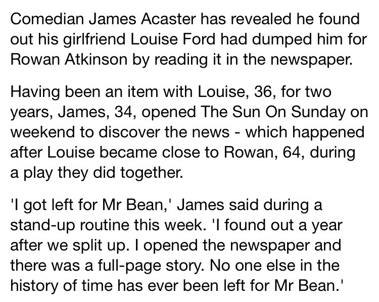 James Acaster Girlfriend : Amy Louise Doherty On Twitter If You Re Ever Feeling Down Romantically Just Remember James Acaster S Ex Left Him For Mr Bean : Apr 30, 2021 · a quarter of adults skip breakfast at least four times a week because they are 'too busy' or have nothing 'appealing' to eat, despite more people than ever working from home.. James william acaster is an english comedian originally from kettering, northamptonshire, who now lives in london. Apr 30, 2021 · a quarter of adults skip breakfast at least four times a week because they are 'too busy' or have nothing 'appealing' to eat, despite more people than ever working from home.